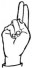 На ћирилици написано МИРКО ШЕВО састоји се из 9 слова [?]. Исписано ћириличном једноручном азбуком за глувонеме: